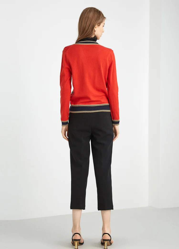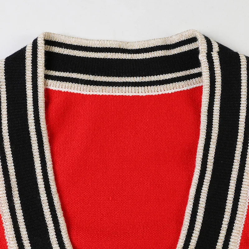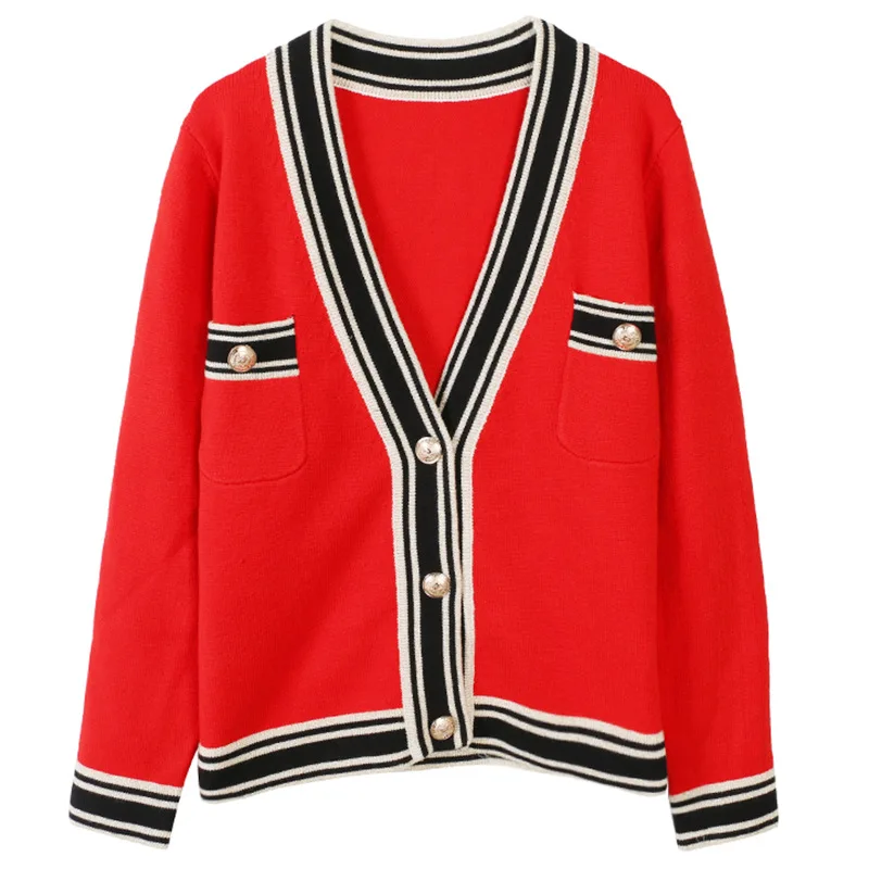 Best Sale Cardigan Women Knitted Single Breasted V neck Red Short Sweater Ladies Red White KNit Top Thin Coat