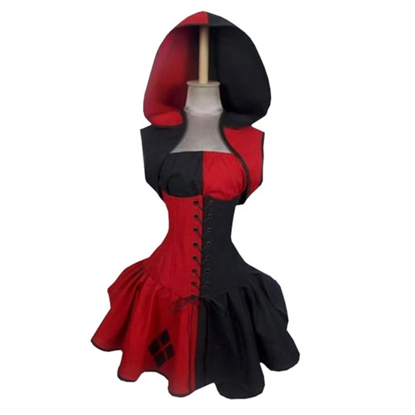 Hot Price Gothic Dress 2020 News Medieval Costume for Women Red Black Plaid Hoodies Fancy Disguise Clothing H